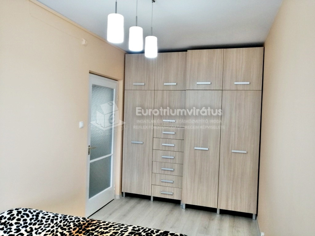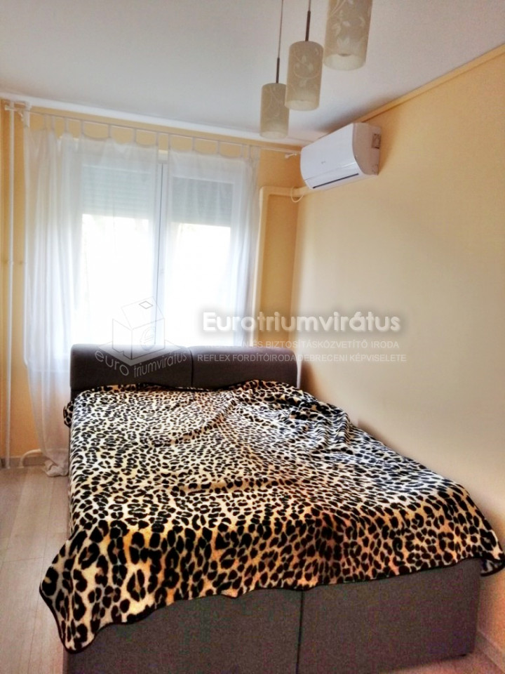 Debrecenben, Vénkertben, Sinai Miklós utcán, a Malompark közelében, 2-es villamos vonal mentén, 10 emeletes, liftes társasház, 2. emeletén, kiadó egy 55 nm – es, 1+ 2 szobás, bútorozott lakás, középső szobája.