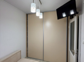Szoba felszereltsége: beépített szekrény, kihúzhatós ágy, kis asztal, TV.