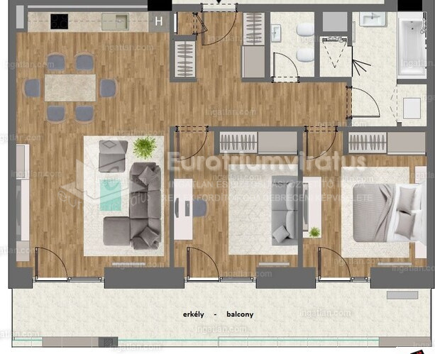 85 m2 nagyságú lakás, 20 m2 erkéllyel új bútorokkal hosszútávra kiadó.