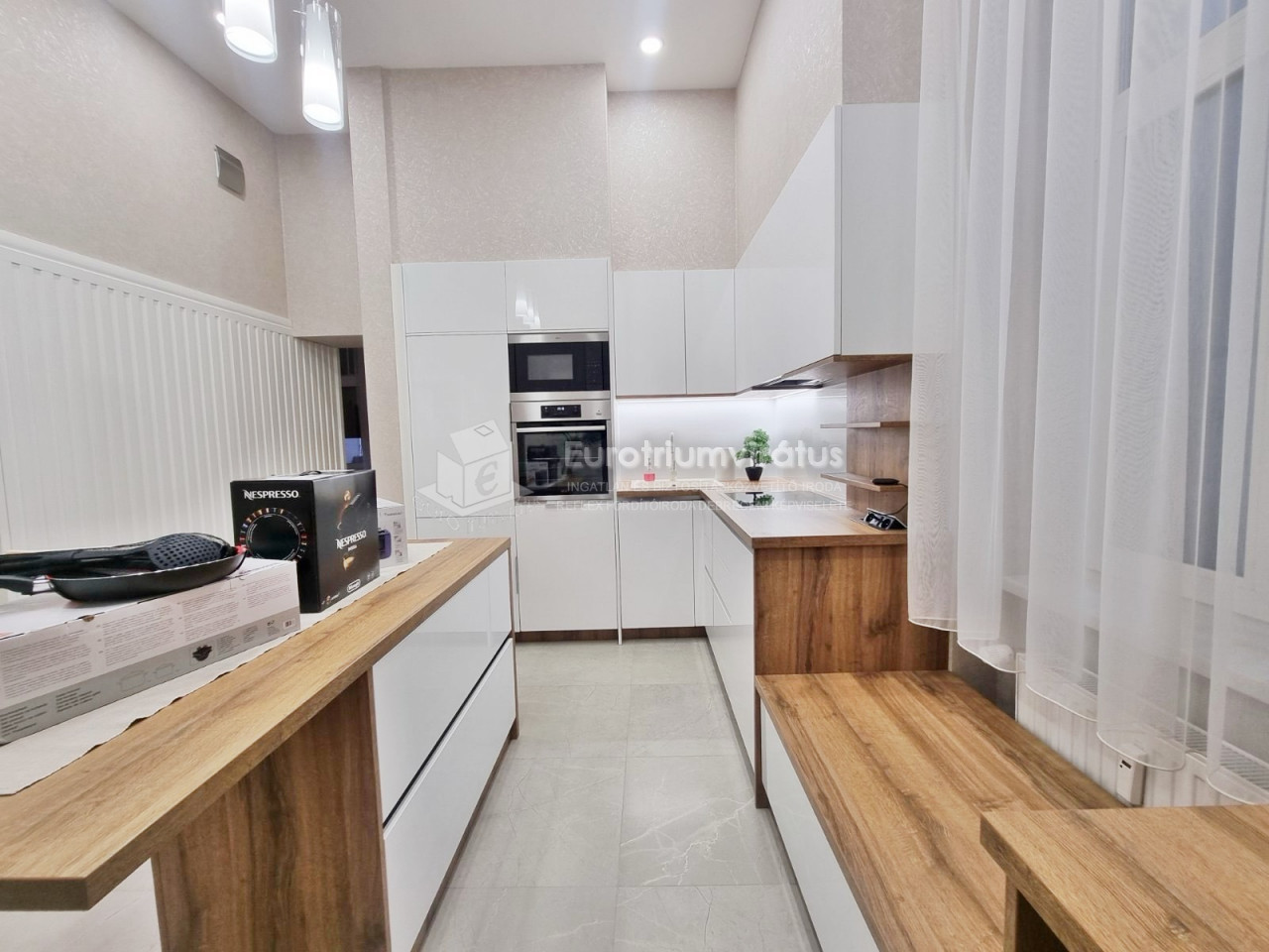 A konyhabútor stílusos, benne márkás konyha gépekkel.