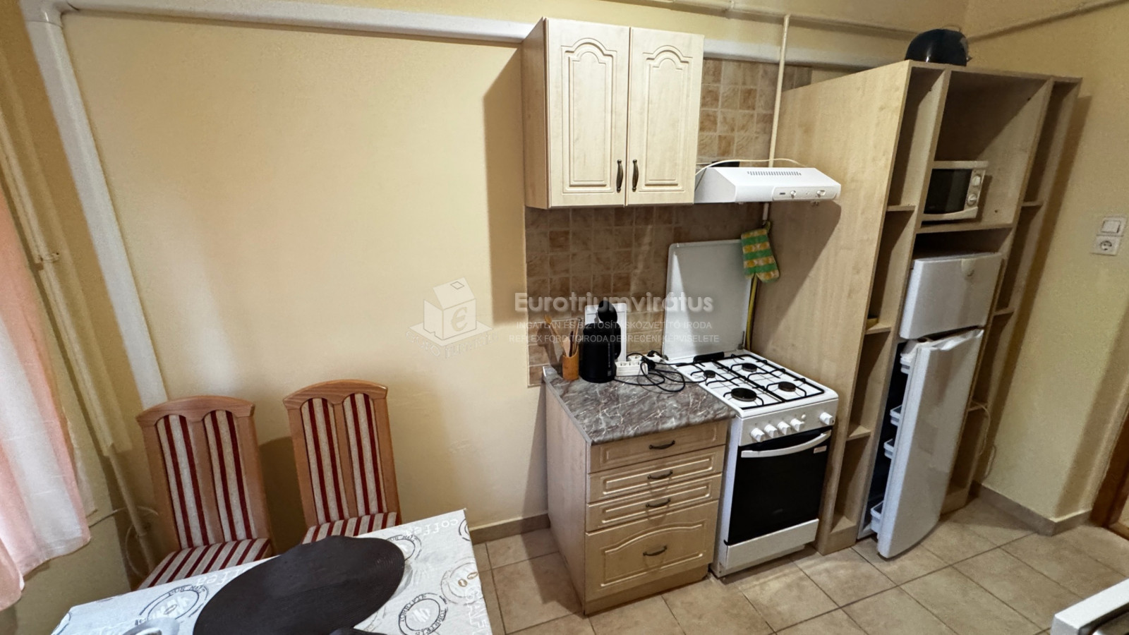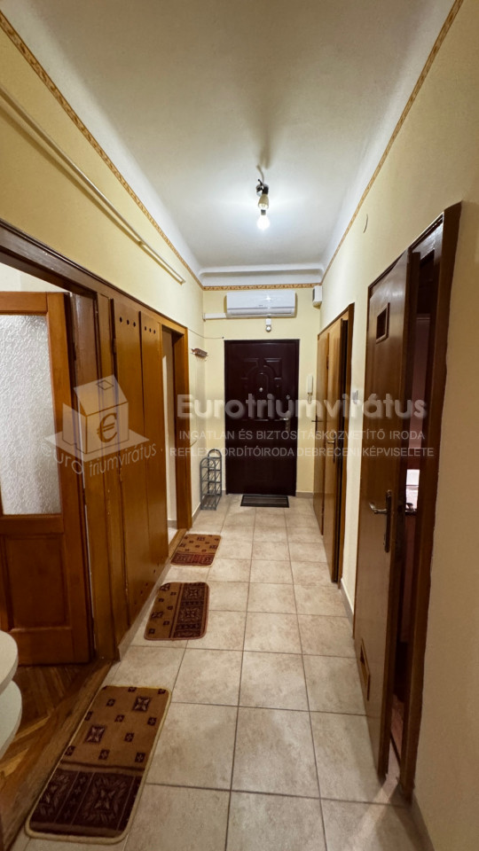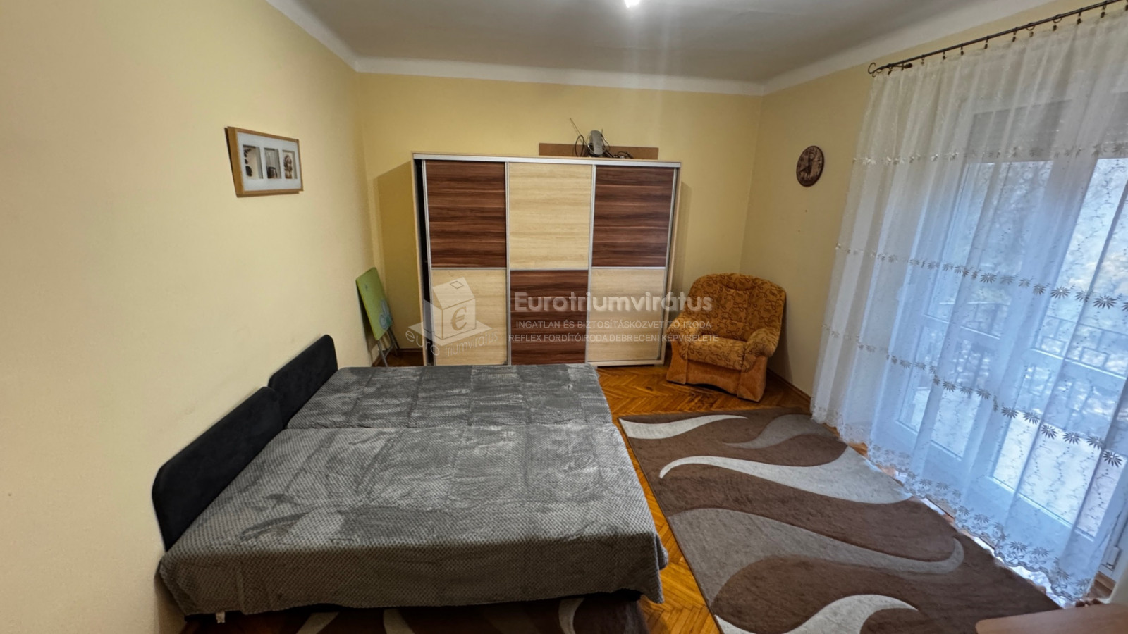 első emeleti, 65 m2-es területű, 2 szobás, erkélyes lakás kiadó.