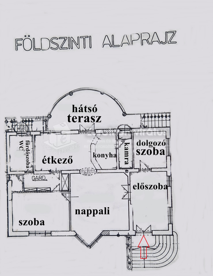 Az épület két szintes, 195 nm-es, nappali + 3 szobás