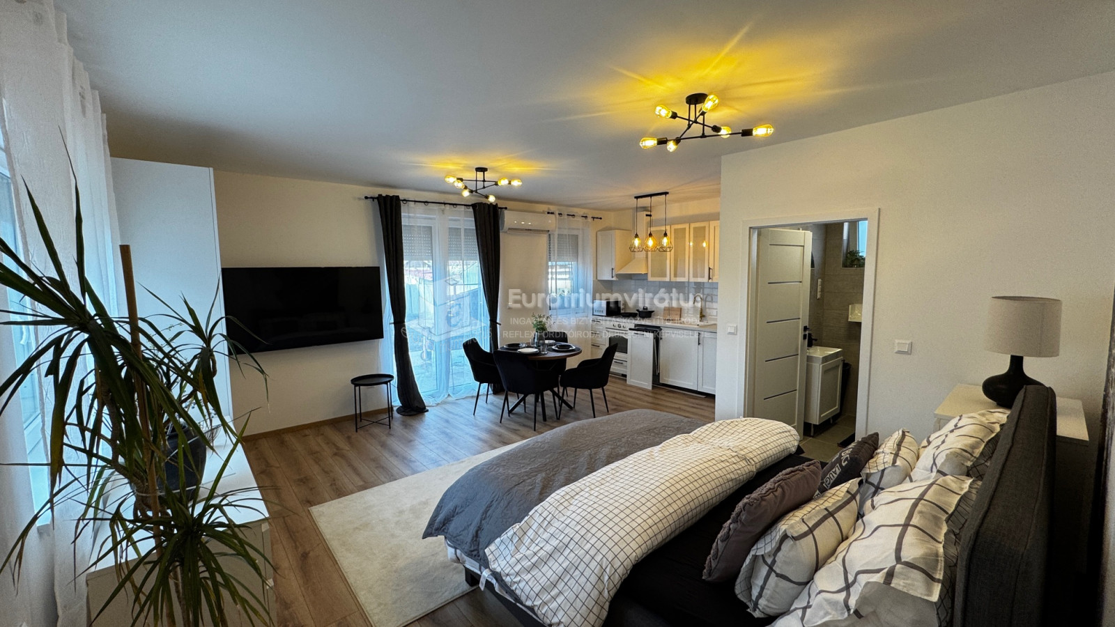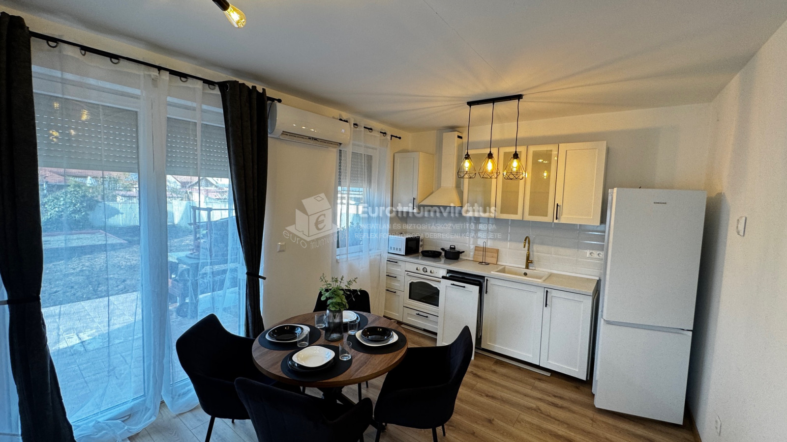 40 m2-es különálló apartman 10 m2 terasszal, bútorozva-gépesítve kiadó.