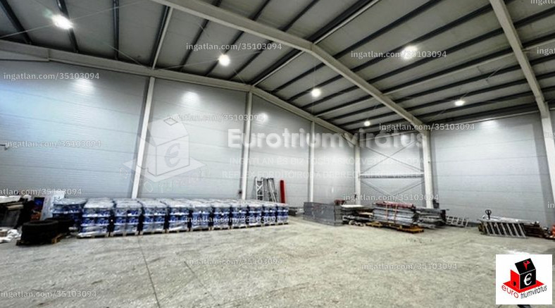 650 m2 nagyságú csarnok raktár, új szendvicspanel épület kiadó.