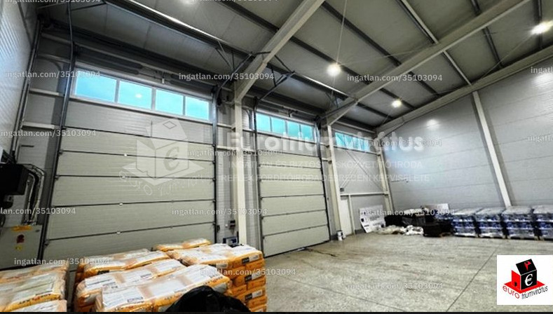 Ipari kapuval felszerelt, 8 m magasság csarnok, iroda és mosdóblokkal.