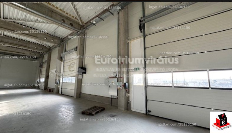 Nagy méretű 4 x 4,5 m ipari kapukkal, személyi bejáratokkal kiépített.