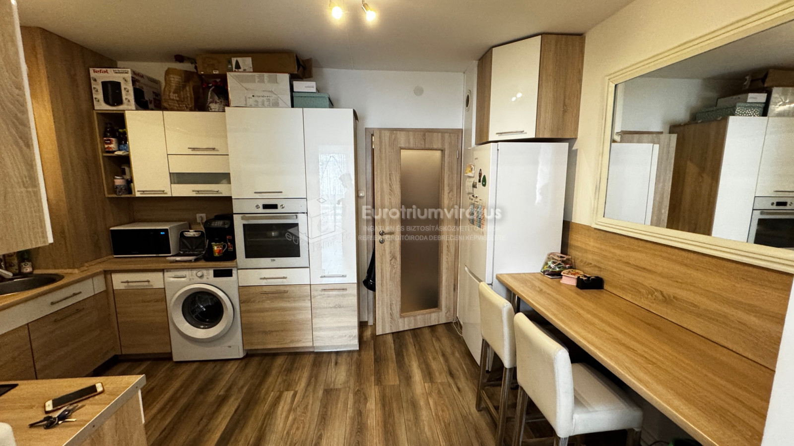 Felosztása: nagy-szoba, erkély, konyha-étkezővel, előtér és fürdőszoba.