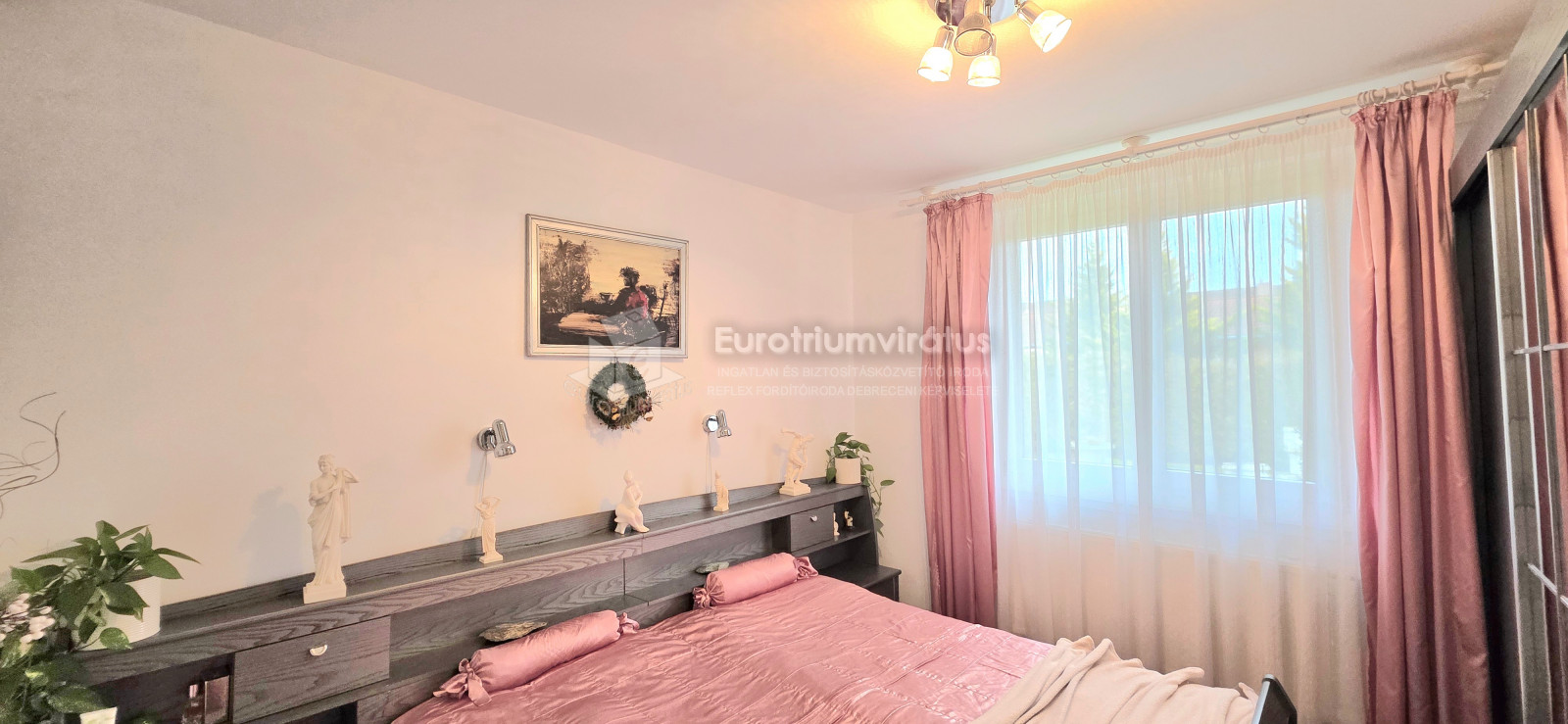 Debrecenben, csendes, családbarát környezetben eladó egy panel szerkezetű, 1992-ben épült, földszintes, belső udvaros (átriumos) családi ház, amely 1993-ban az Év Lakóháza díjat nyerte el.