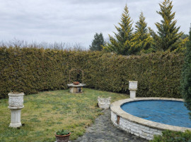 Udvar: csempézett terasz, fúrt kút, szalonnasütő, medence, automata öntözőrendszer.