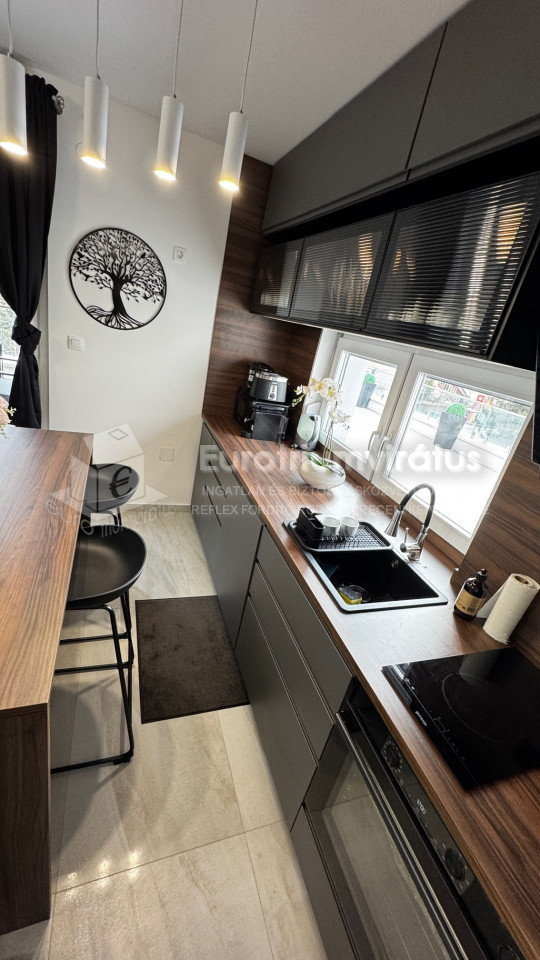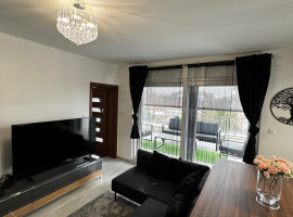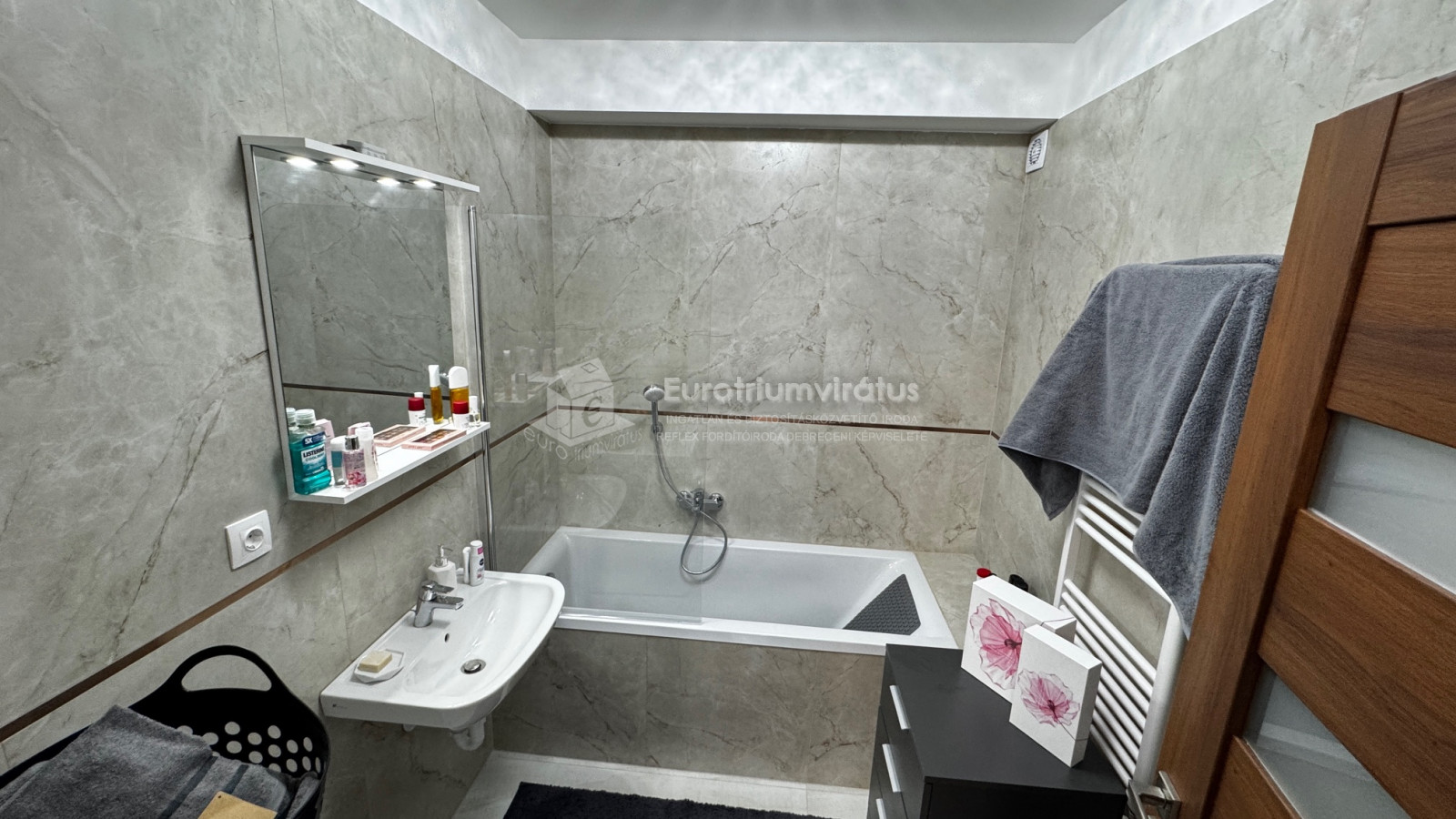 A modern konyha beépített gépekkel ellátott, a burkolatok és szaniterek magas minőséget képviselnek. Teljes bútorzattal kiadó a lakásban padlófűtés, mennyezet hűtés-fűtés található.