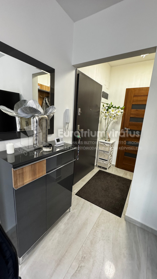 A lakás kiváló benapozottságú, egész nap világos, nagy üvegfelületeinek köszönhetően.