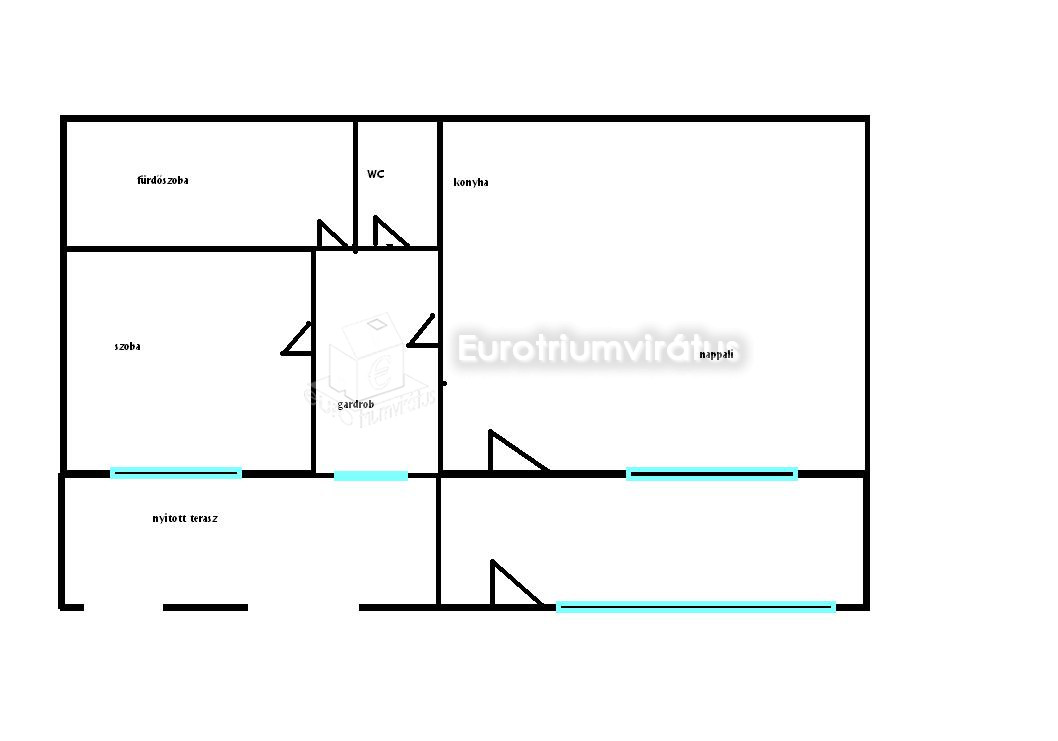 Az ingatlan nappali + amerikai konyhás, ezen kívül még egy szoba található benne.