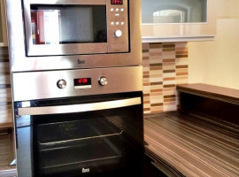 A konyhában modern konyhabútor van.