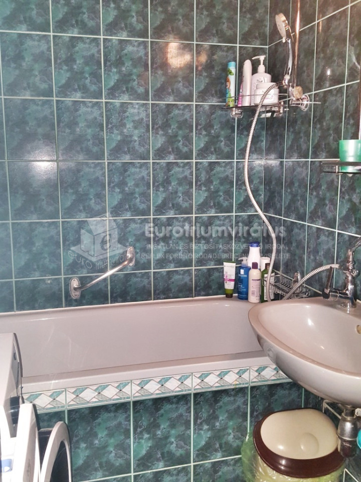 A fürdőszoba és a WC külön helyiségben van.