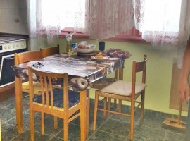 Bútorokkal és háztartási gépekkel felszerelt.
