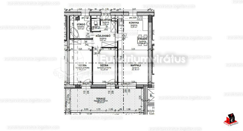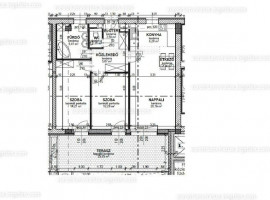 70 m2-s, bútor nélküli, de beépített konyhával rendelkező, nagy erkélyes,