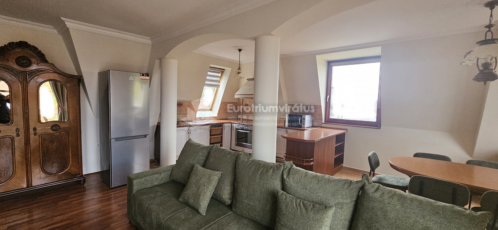 A lakás egy csendes, gondozott társasház legfelső szintjén található, amelyhez zárt, parkosított kert is tartozik. A kert valódi közösségi térként is használható: szalonnasütő, filagória, fás-ligetes környezet biztosítja az otthonosságot és a kellemes pihenést a szabadban.
