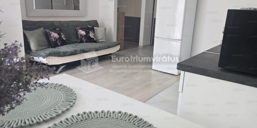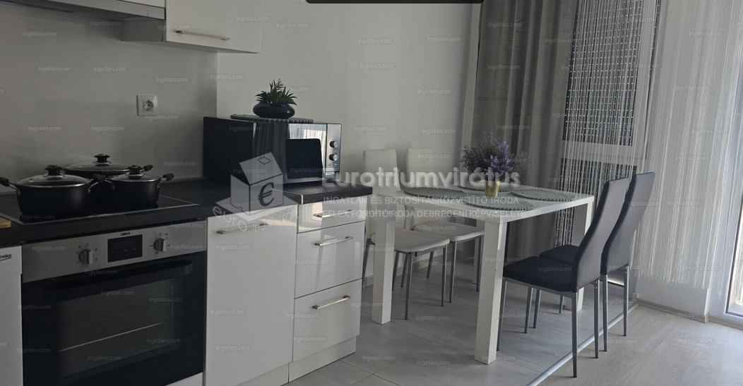 70 m2 alapterületű, második emeleti, újszerű lakás bútorozva-gépesítve kiadó.