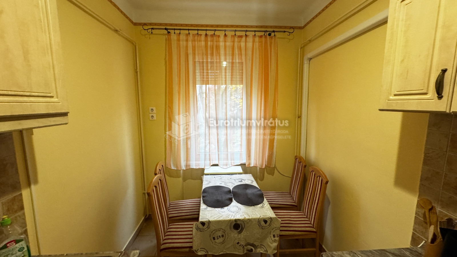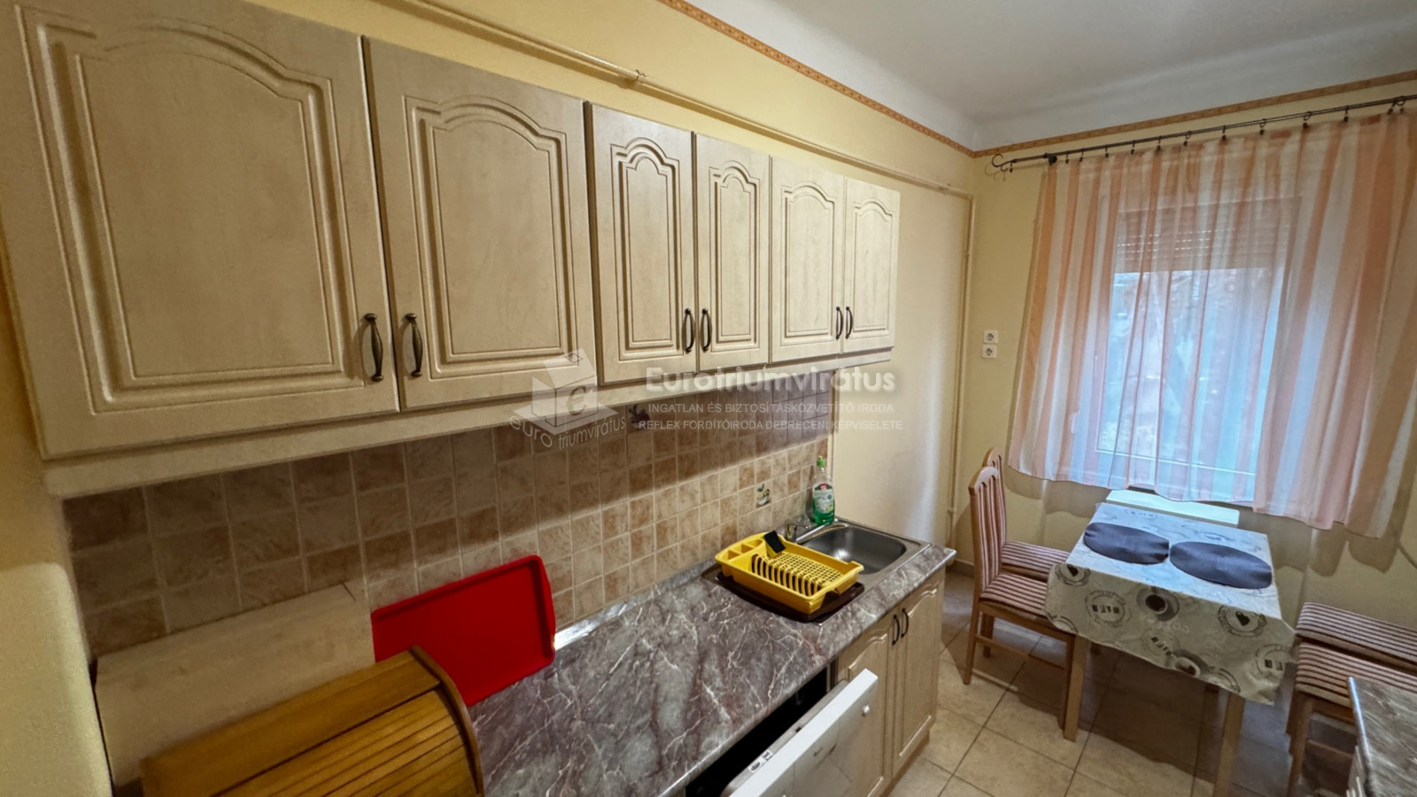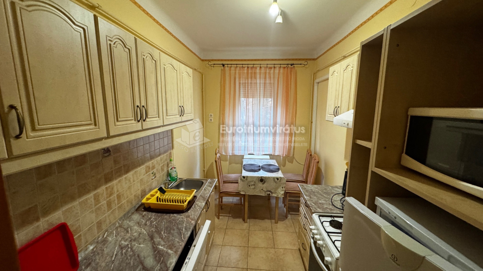 első emeleti, 65 m2-es területű, 2 szobás, erkélyes lakás kiadó.