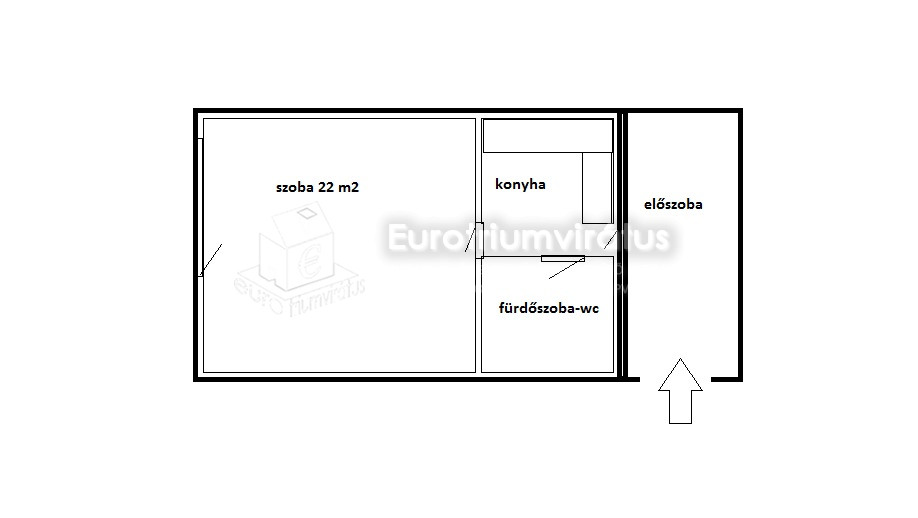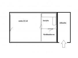 A szoba nagy méretű 22 m2, nappali és háló-sarok kialakítható.