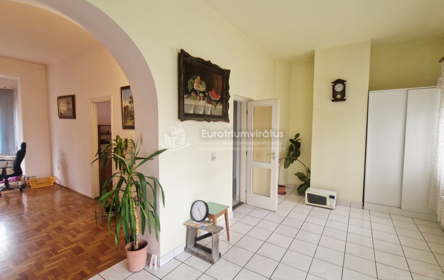 Tágas előszoba, nappali + 1 nagy szoba, konyha, étkező, fürdőszoba + WC, külön helyiségben is van még egy WC