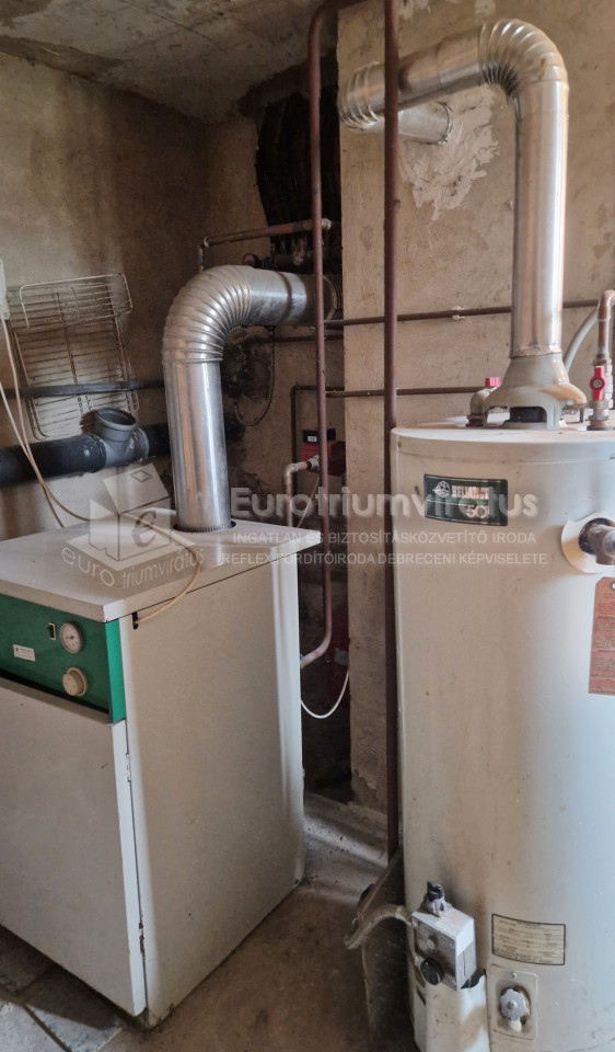 A fűtés: gázkazánnal radiátoros hőleadókkal, a meleg vizet villanybojler biztosítja, ezt korszerűsíteni kell.