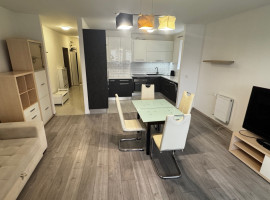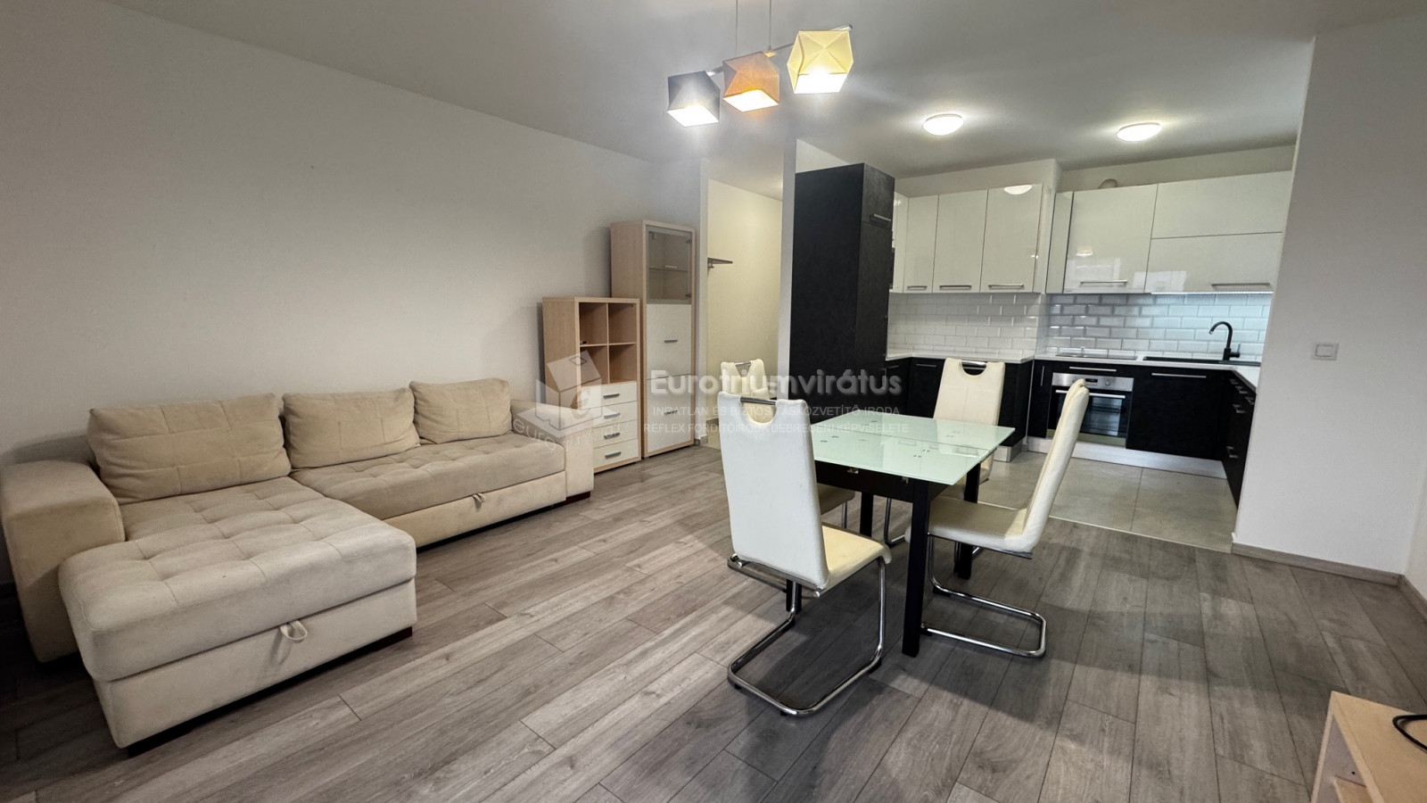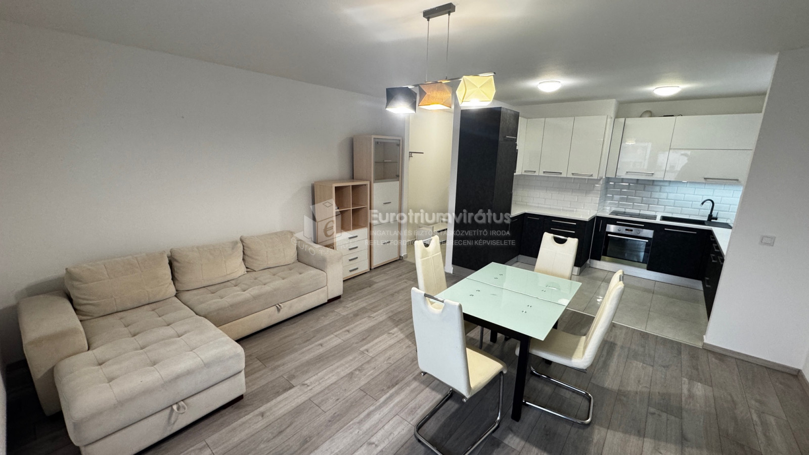 A beépített gépesített konyha és a nappali egy légtérben található.