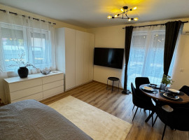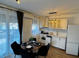 40 m2-es különálló apartman 10 m2 terasszal, bútorozva-gépesítve kiadó.