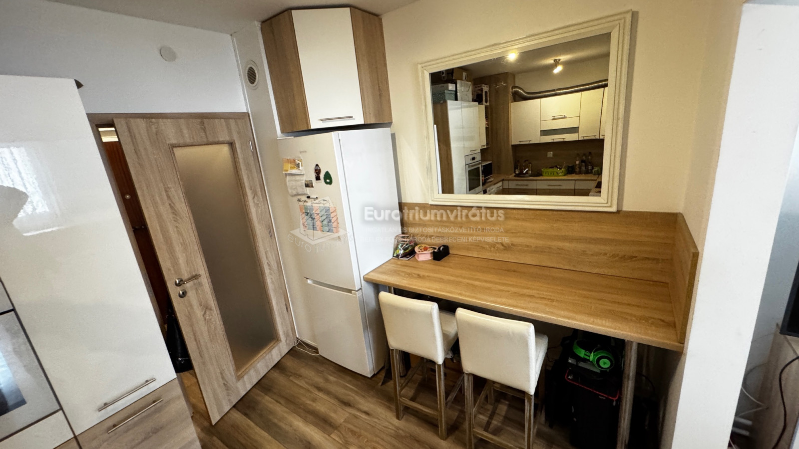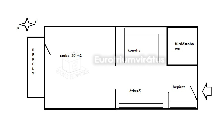 Felosztása: nagy-szoba, erkély, konyha-étkezővel, előtér és fürdőszoba.