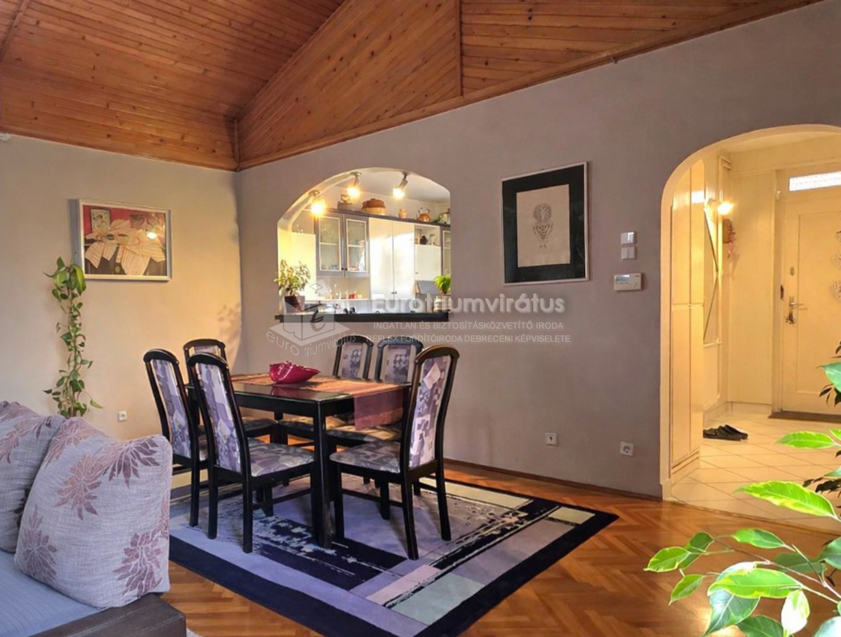 Debrecenben, csendes, családbarát környezetben eladó egy panel szerkezetű, 1992-ben épült, földszintes, belső udvaros (átriumos) családi ház, amely 1993-ban az Év Lakóháza díjat nyerte el.