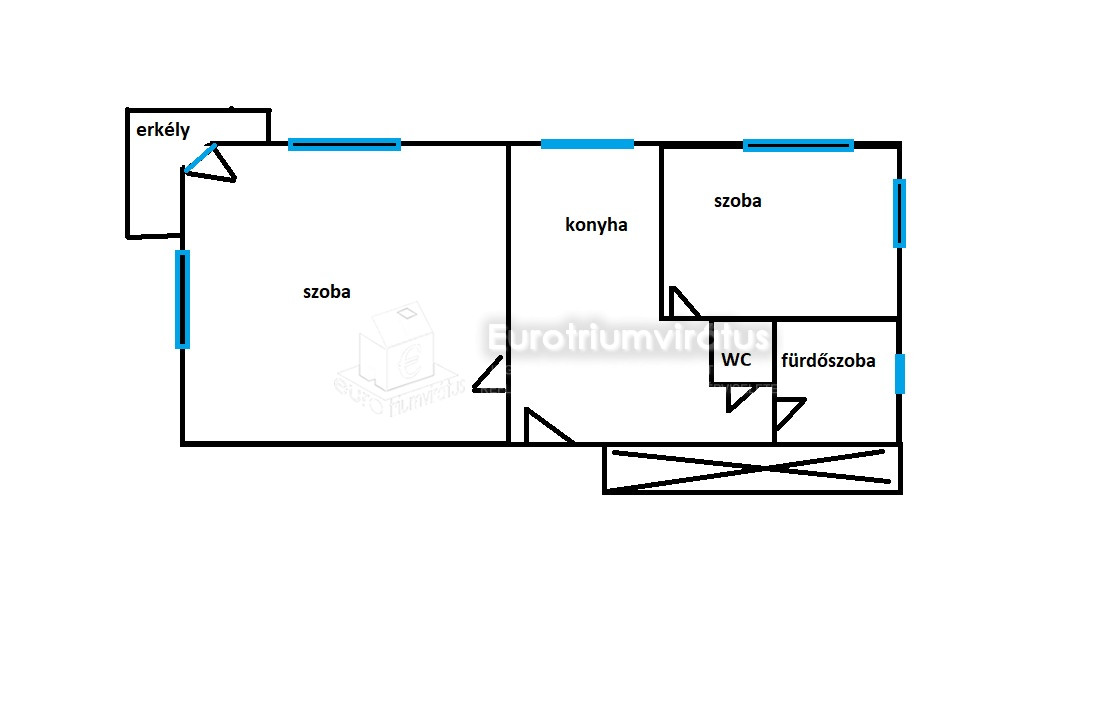 2 szobás, nagy konyhás, erkélyes lakás.