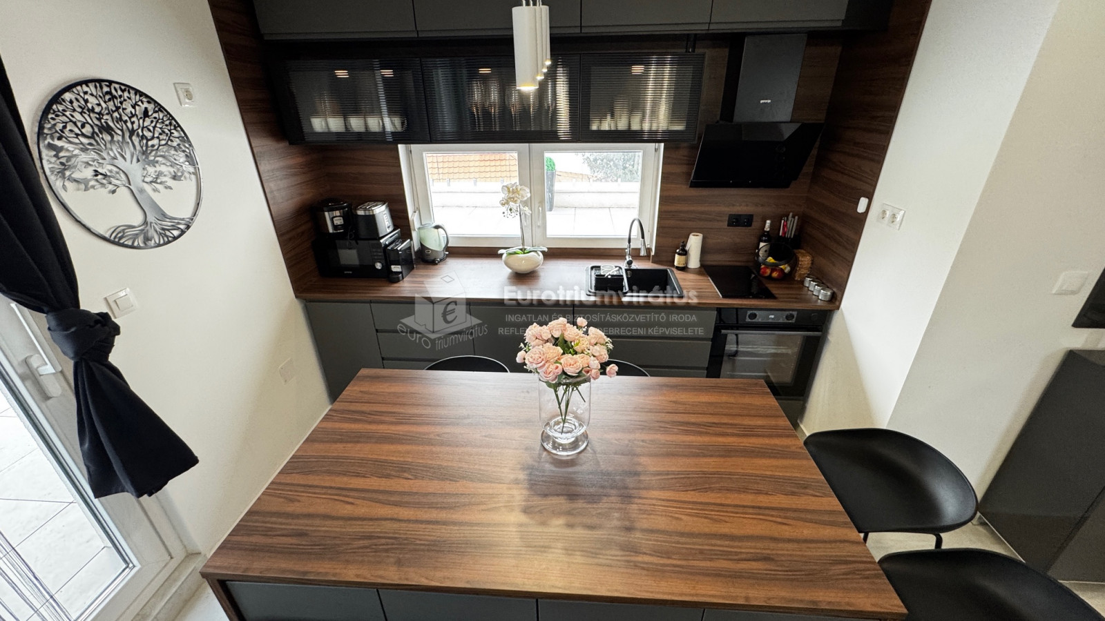 A+ kategóriás penthouse lakás bútorozva és gépesítve kiadó.