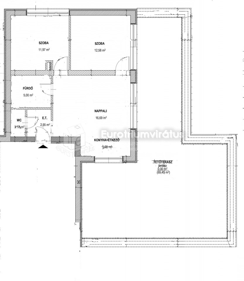 amelyhez egy 90 m²-es, napfényes tetőterasz kapcsolódik panorámával.