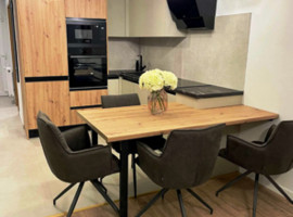 teljesen felújított bútorozott gépesített nagy teraszos luxuslakás klímával kiadó!