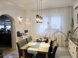 Debrecenben, az Újkert városrészben, a parkos környezetéről ismert Borbíró tér területén eladó egy 63 m²-es, 2 + fél szobás, jó állapotú panellakás. Az ingatlan parkra néző, csendes kilátással rendelkezik, elhelyezkedése pedig kivételes: a Debreceni Egyetem Campus és a Nagyerdő mindössze néhány perc sétával elérhető. A lakás világos, élhető terekkel és praktikus elrendezéssel rendelkezik. A 18 m²-es nappali tágas közösségi térként szolgál, mellette egy 10 m²-es és egy 8 m²-es szoba biztosít kényelmes életteret. Az elosztásnak köszönhetően ideális pároknak, kisebb családoknak, de kiváló lehetőség befektetési célra, kiadásra is. A konyha étkezőrésszel kialakított, a két loggia pedig tovább növeli a lakás komfortérzetét. A parkra néző kilátás nyugodt, zöld környezetet biztosít. Műszaki tartalom tekintetében az ingatlan gondozott, jó állapotú. Távfűtés egyedi mérőkkel biztosítja a kiszámítható rezsit. A bejárati ajtó Hi-Sec biztonsági ajtó, a külső nyílászárók műanyagok, redőnnyel felszerelve. A 3,5 kW-os Fujitsu klíma gondoskodik a nyári hűtésről, az ivóvízszűrő rendszer a mindennapi kényelmet növeli. A társas ház tiszta, rendezett, jó lakóközösséggel. A lépcsőház gondozott, a liftek korszerűek és modernizáltak, kamerával felszereltek. Az infrastruktúra kiváló: a 2-es villamos megálló kb. 200 méterre található, gyógyszertár a szomszédos tömbben, zöldséges és vegyesbolt közvetlenül a ház alatt működik. Posta, óvoda és iskola 250 méteren belül elérhető, valamint orvosi rendelők és konditerem is a közelben található. A Debreceni Egyetem Campus és az Egyetem tér kb. 10 perc sétával megközelíthető, a Nagyerdő pedig gyorsan elérhető, így a zöld környezet és a városi kényelem egyszerre adott. Az ingatlan per- és tehermentes, tulajdoni viszonyai rendezettek. Amennyiben egy jó elosztású, kiváló elhelyezkedésű, azonnal költözhető lakást keres Debrecen egyik legnépszerűbb részén, ez az ingatlan ideális választás lehet.